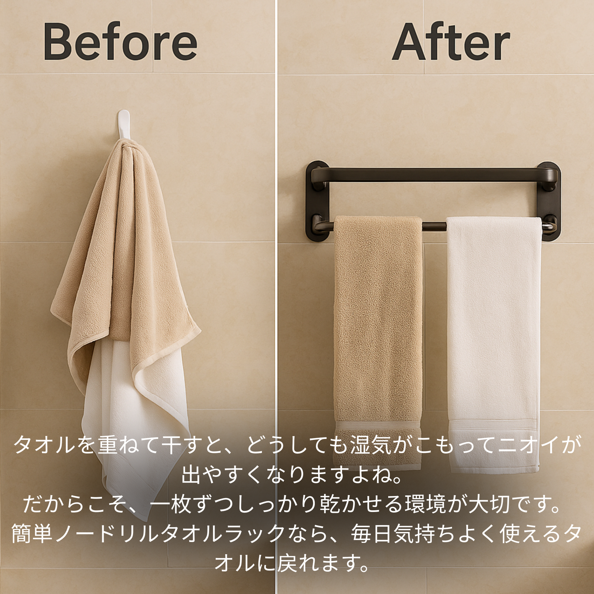 簡単ノードリルタオルラック|ランキング1位・賃貸OK・壁に傷をつけない